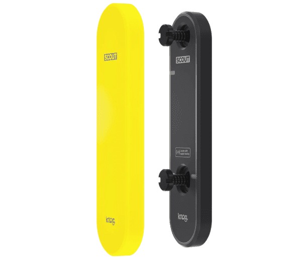 Knog Scout er en smart og diskret cykelalarm og GPS med en vægt på 25 gram, som kan gemmes bag en flaskeholder eller det medfølgende cover.